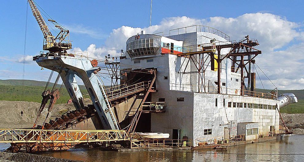 Драга может быть величиной с четырехэтажный многоквартирный дом и весить до 1400 тонн. На борту плавучей установки есть все необходимое оборудование для промывки песка или донной породы, управлять самой большой драгой могут до десяти человек, а небольшой лишь один.
