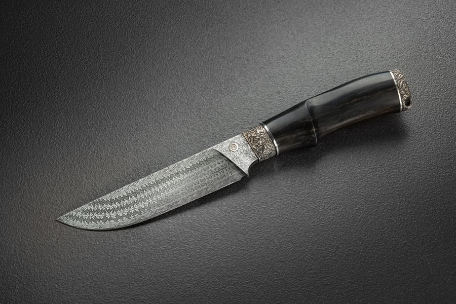 Дамасская сталь не относится к самостоятельным видам металла. Это лишь смесь стальных частиц и сварочного железа. В процессе травления методом кислой травки на металле образуется особый рисунок, по виду похожий на орнамент, включающий в себя темные и светлые черточки. Причем, если процесс произведен верно, светлые и темные черточки строго чередуются между собой.