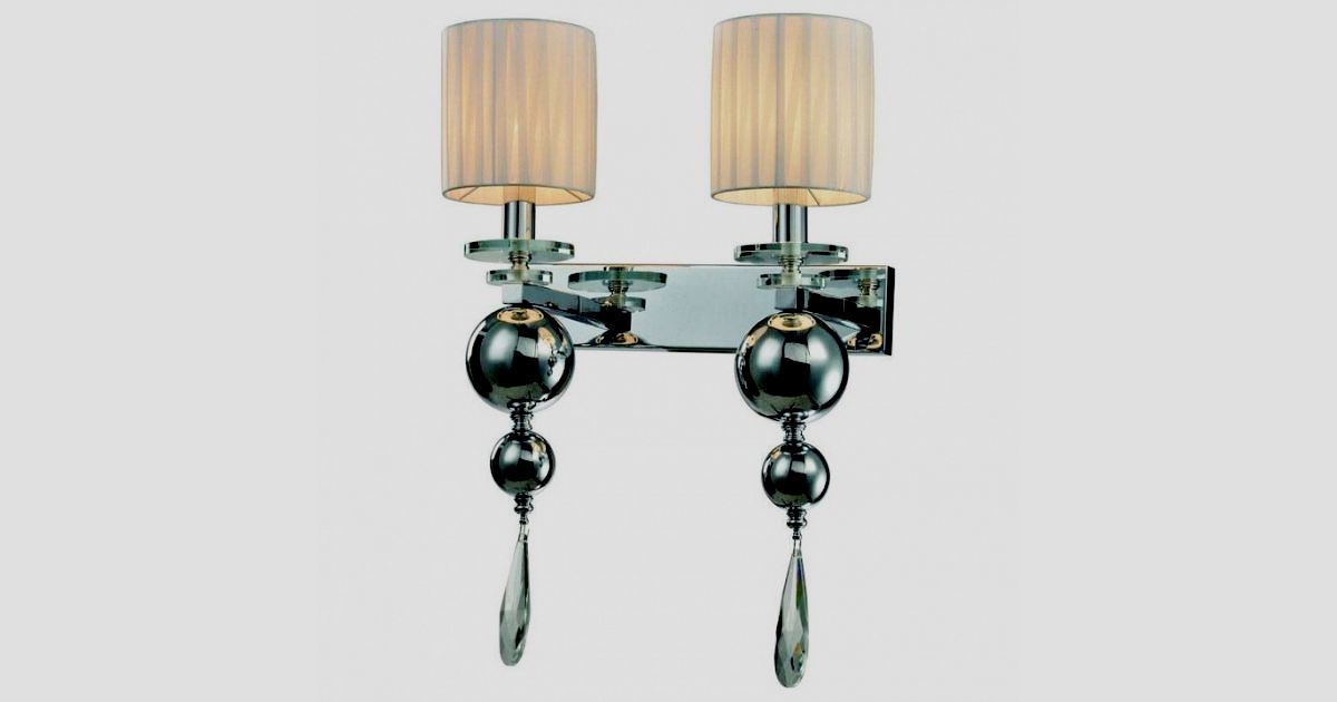 Интересный и скромный осветительный прибор оснащен двумя абажурами. При их изготовлении используется качественный шифон, уложенный в складки. Основание металлическое, под серебро. Подножки с хрустальными подвесками. Идеально впишется в любой интерьер помещения, будь то столовая, спальня, гостиная, прихожая. Отзывы о товаре только положительные.
