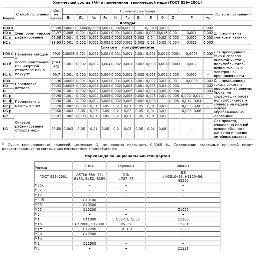 ГОСТ 859-2001 о марках меди