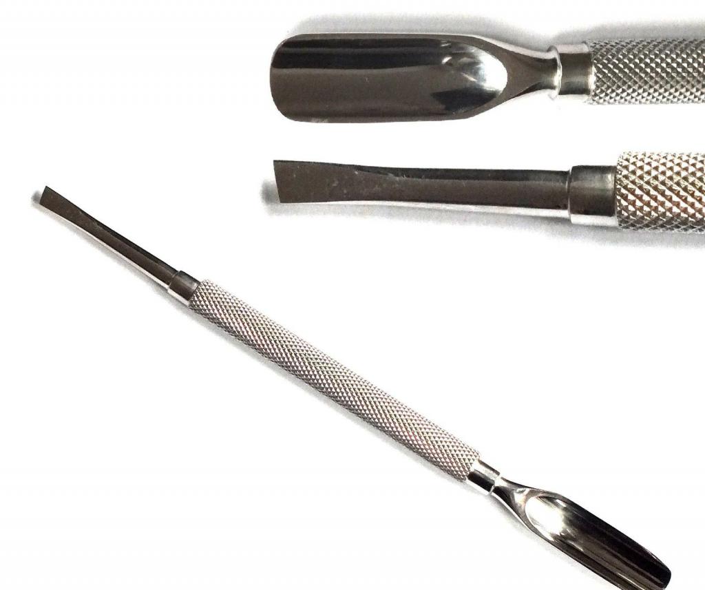 Особенностью инструмента является наличие у него двух рабочих поверхностей. У каждой из них особенная форма, потому и функции они выполняют разные. По форме одна из поверхностей похожа на маленькую лопатку. Ею обрабатывают кутикулу, удаляют ее тонкий слой, прирастающий прямо к коже, которая находится вокруг ногтевой пластины.
