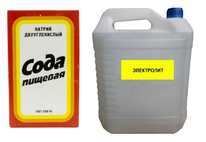 Достаточно опустить в него медные объекты на несколько часов. В качестве альтернативной версии, делается смесь из пищевой соды. Она обязана быть густой, чтобы можно было нанести на плоскость.