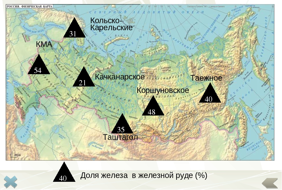 Самые богатые из месторождений, известных добычей железных руд – это Горно-обогатительные комбинаты, расположенные на территории Курской магнитной аномалии, которую считают самым крупным мировым источником ресурса. Кроме этого известны такие месторождения, как Белорецкое, Оленегорское, Костомукшское, Качканарское и Магнитогорское.