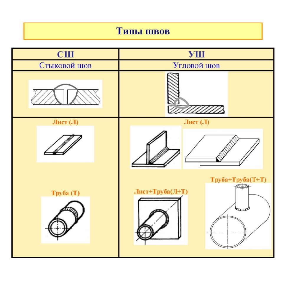 Типы швов. Стыковой шов — СШ, Угловой шов — УШ