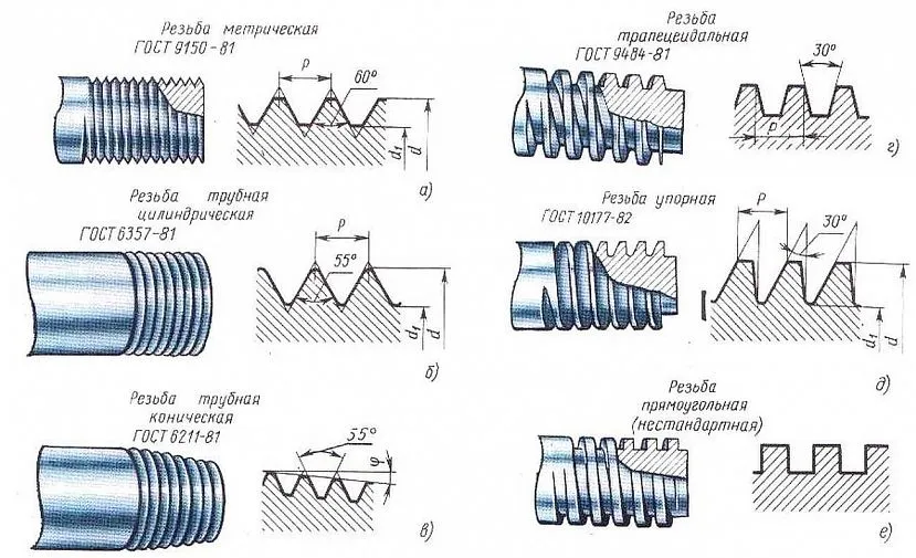 Разновидности резьбовых насечек