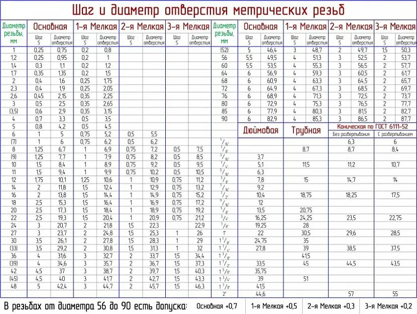 Дюймовая резьба — таблица, размеры, виды