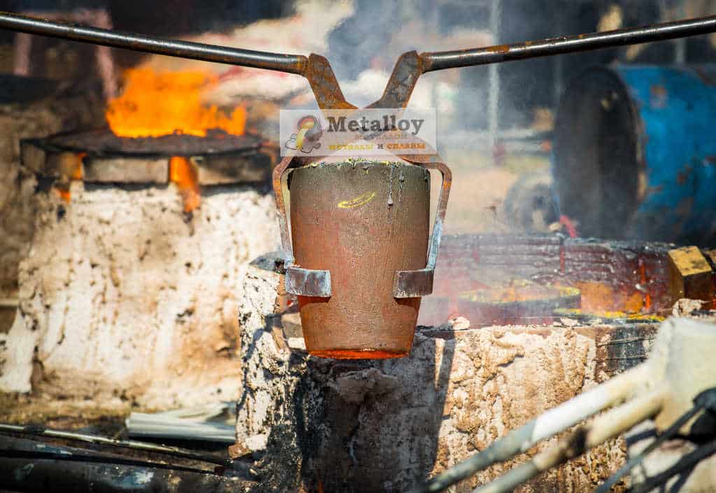 - На металлическую пластинку ставится тигель, в котором будет плавиться металл.