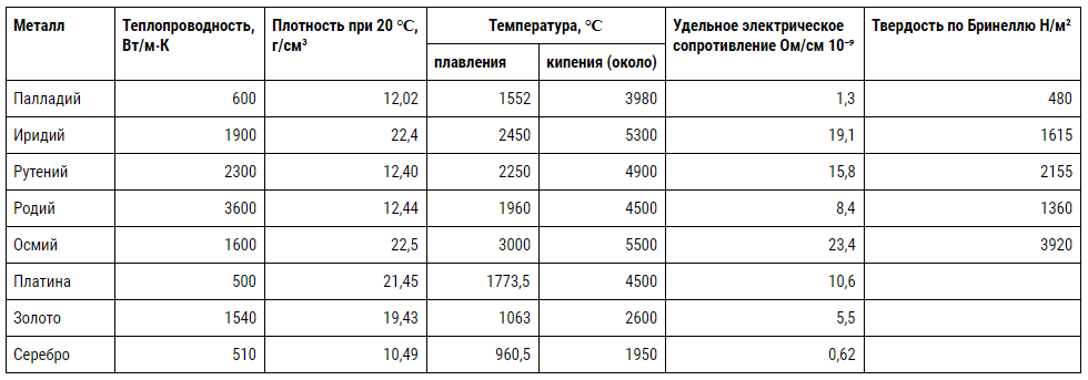 Некоторые физические и механические свойства платиноидов собраны в табл