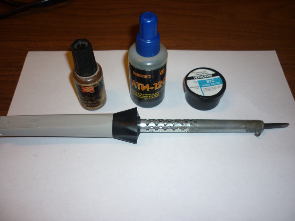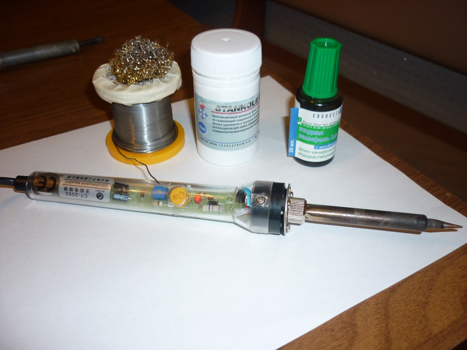 Кроме самого паяльника нужны будут припои, канифоль или флюсы, желательно иметь подставку. Еще в процессе работы может потребоваться небольшой напильник и маленькие пассатижи.