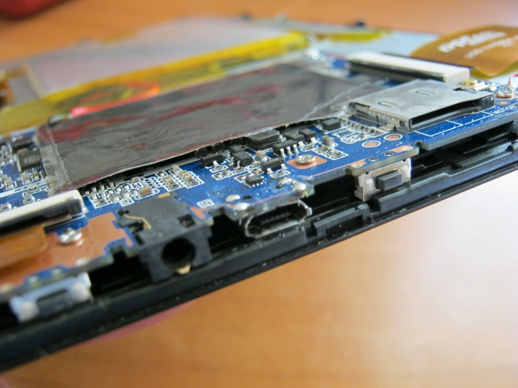 Разбирать где находится микросхема памяти, проц и другие различные микрухи не вижу смысла, так как в основном ремонт планшета подразумевает собой замену тачскрина, дисплея и разъемов.