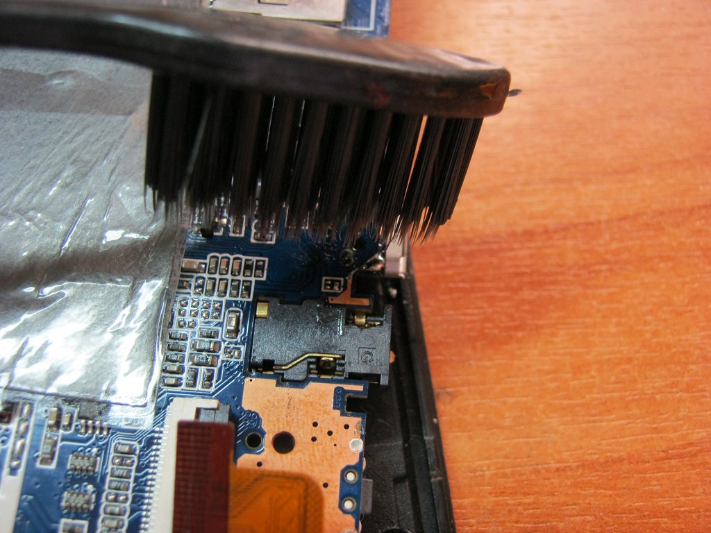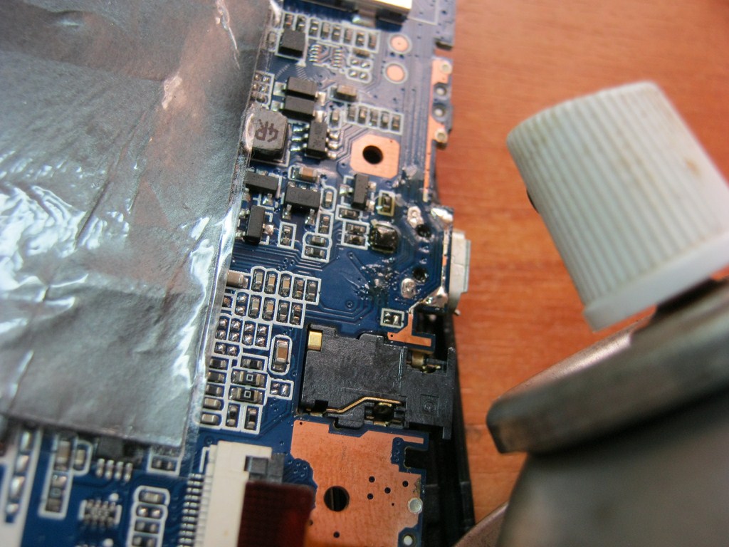 В-четвертых, выкручивают на плате крепежные элементы, после чего ее переворачивают. Это позволяет полностью открыть к разъему доступ. Если стало понятно, что разъем починить не представляется возможным, то нужна замена. С этой целью следует заранее приобрести такую же деталь. В некоторых случаях к планшетам может подойти разъем сотового телефона. Снимается неисправная запасная часть следующим образом: скальпель просовывается между разъемом и платой, после чего крепежные лепестки детали отделяются путем аккуратного поднятия сначала одной, потом другой стороны.