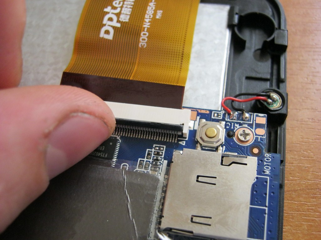 Теперь нам надо достать плату. Отвинчиваем все болты, которые ее держат. Также убираем все шлейфы, которые идут на плату. Для этого поднимаем застежку пальчиком вверх