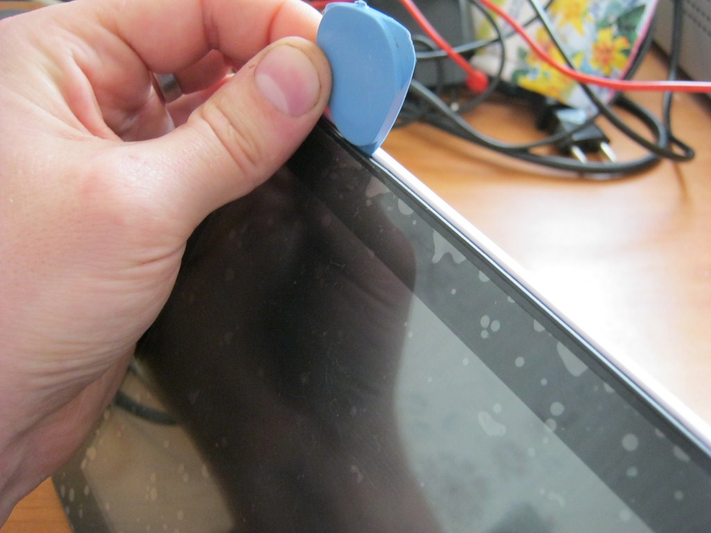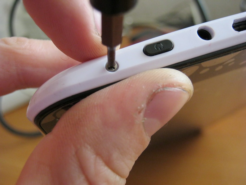 Существует определенная последовательность замены зарядного гнезда планшета. Во-первых, откручивают винты на корпусе устройства. При помощи скальпеля либо ножичка очень аккуратно поднимают крышку сзади и снимают ее.