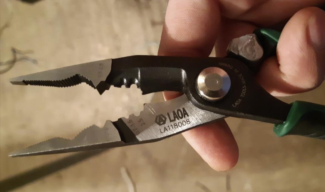 Вот этот инструмент особенно всем советую. Очень удобные плоскогубцы с множеством функций. Сделаны из качественной легированной стали с добавками хрома и молибдена. Резиновые ручки обеспечивают изоляцию и хороший контакт без проскальзывания. Но самое главное — это широкий функционал.