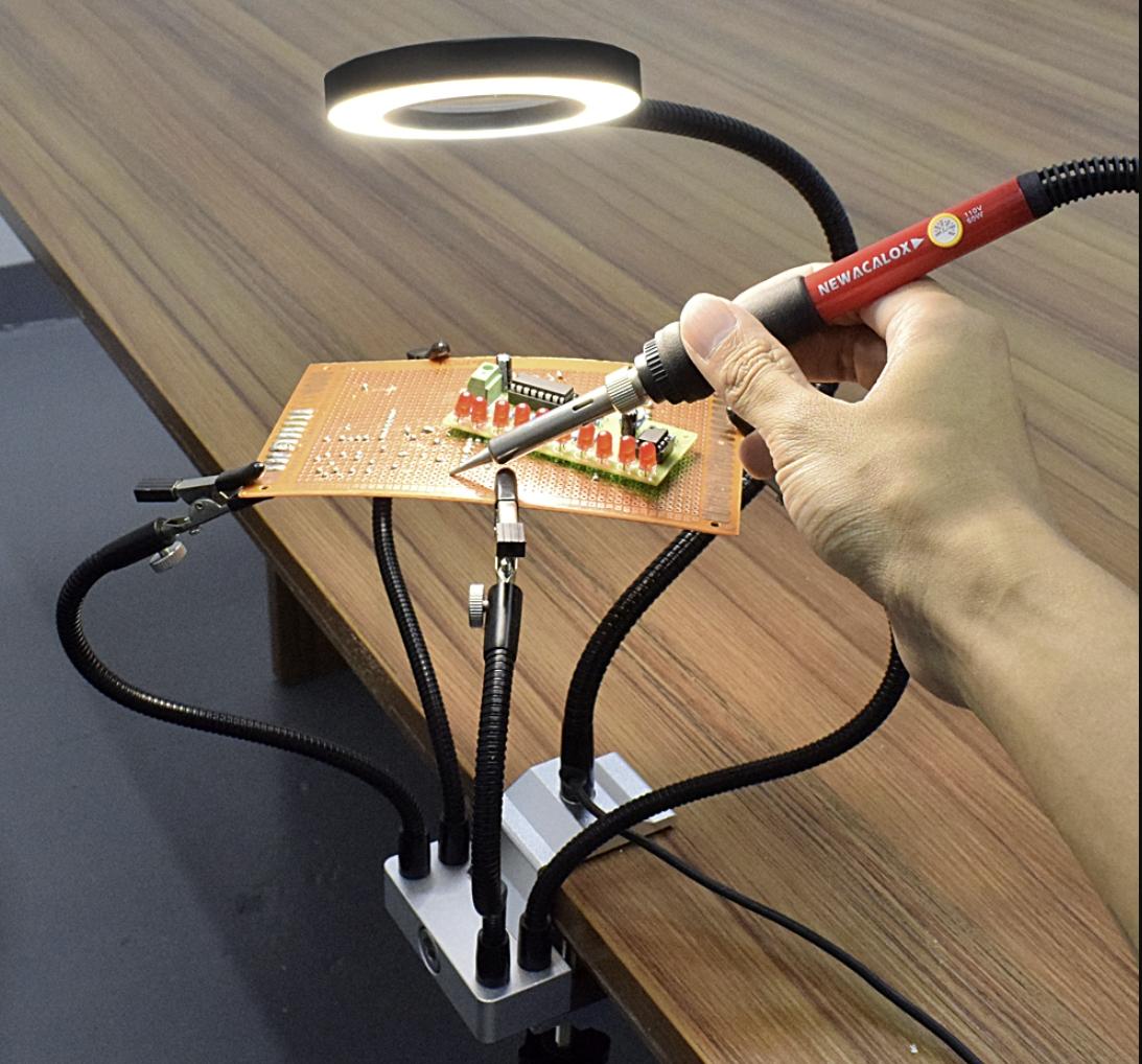 Этот станок особенно удобен при ремонте небольших плат, где требуется высокая точность движений. Линза позволяет хорошо «прицелиться», а зажимы надежно удерживают модуль во время пайки.