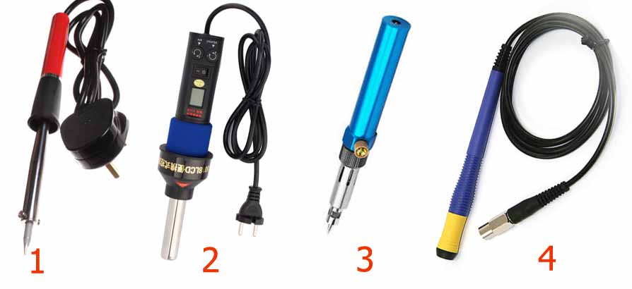 Паяльники: 1-Электрический, 2-Термовоздушный, 3-Газовый, 4-Индукционный