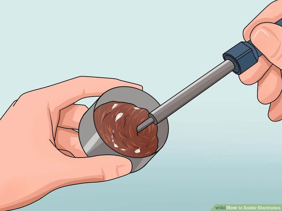 Теперь важно иметь на жале паяльника небольшое количество припоя. Если его много, протрите жало влажной губкой