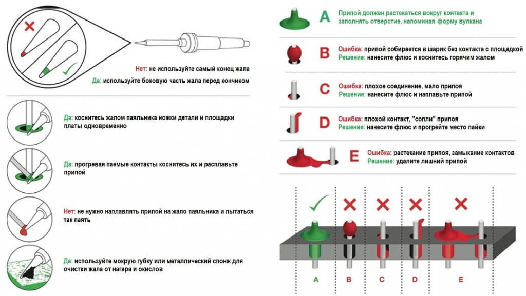В первом случае на жало набирают каплю припоя, переносят на паяемую поверхность, и, если: