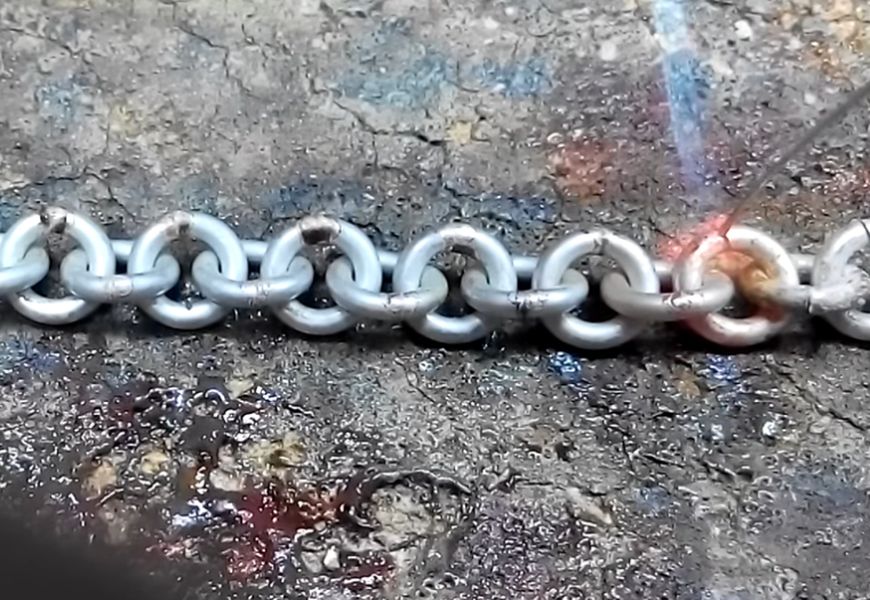 Для начала поверхность необходимо подготовить. Помимо флюса, необходимо зачистить будущее место спайки и удалить загрязнение и жир. Эти процедуры должны производиться непосредственно перед началом пайки. Далее необходимо нанести флюс и соединить две детали. Если вы пытаетесь починить золотую цепочку и интересуетесь, как запаять ее, не забывайте что перед тем, как соединять два металла, необходимо продеть их в целые звенья и соединить изделие.