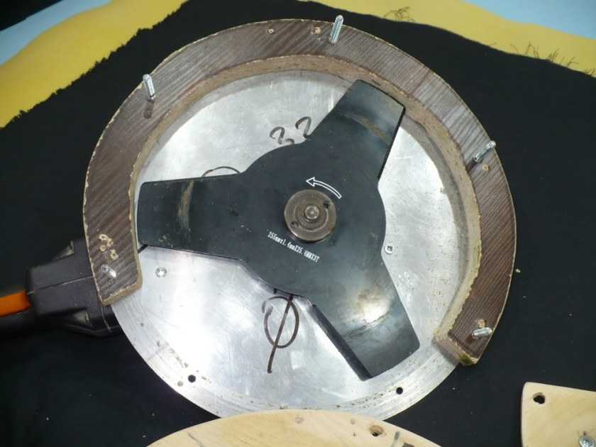 Траворезка из мотокосы изготавливается в ряд этапов. Первоначально подготавливают в емкость, где будет перемалываться трава с ветками: