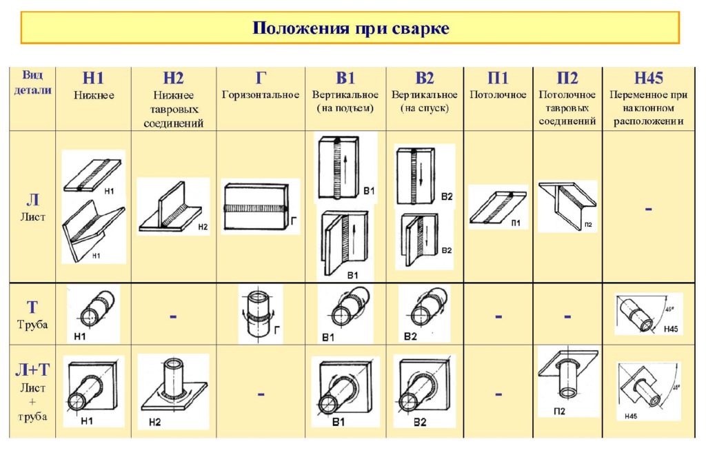 В зависимости от пространственного положения сварного шва приемы сварки и техника будут отличаться