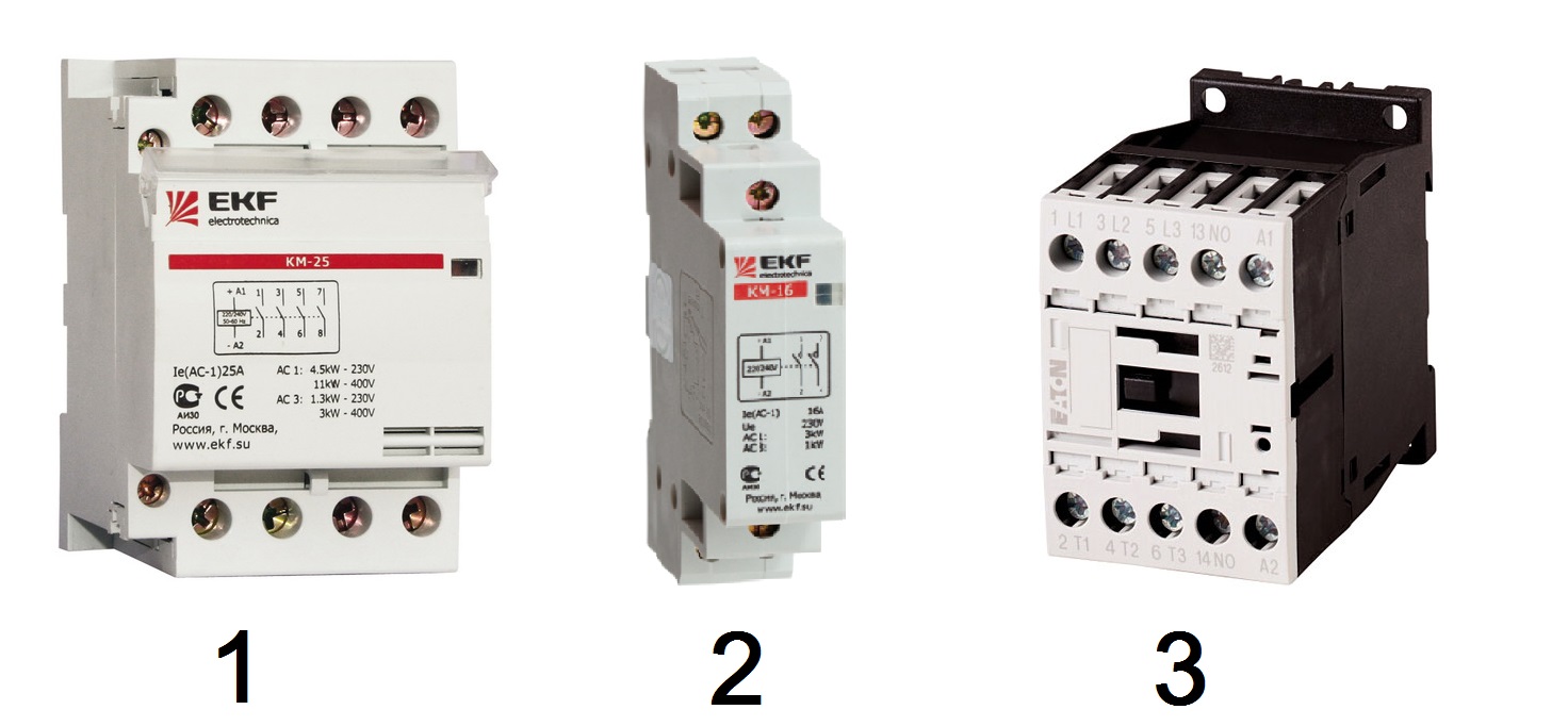 Существуют так же так называемые модульные контакторы — это компактные контакторы предназначенные для установки на DIN рейку, в остальном их устройство и принцип работы такой же как и у обычных контакторов.