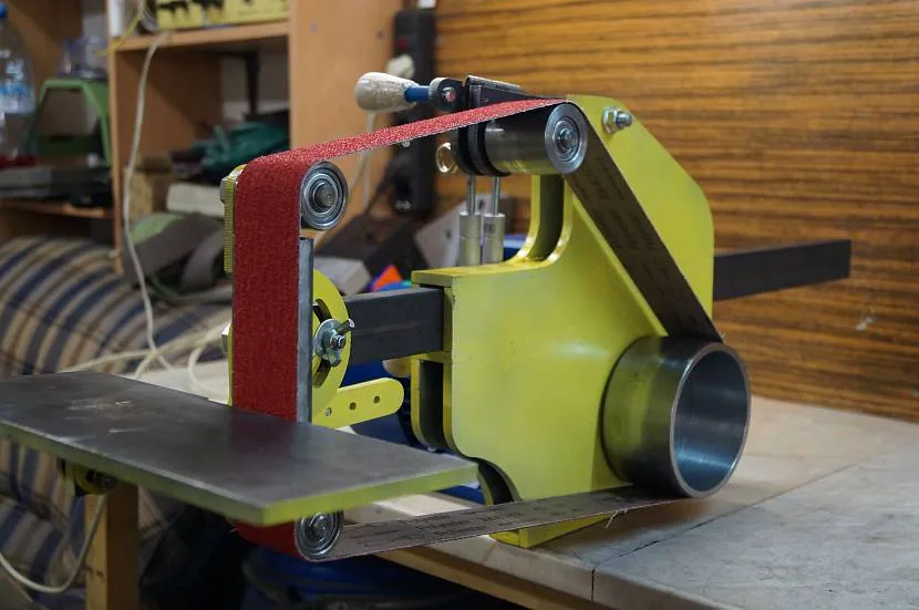 - система натяжения. Это устройство, которое позволяет шине все время находится в натянутом состоянии. Если шлифовальная лента будет провисать, то при запуске весьма вероятен ее разрыв;