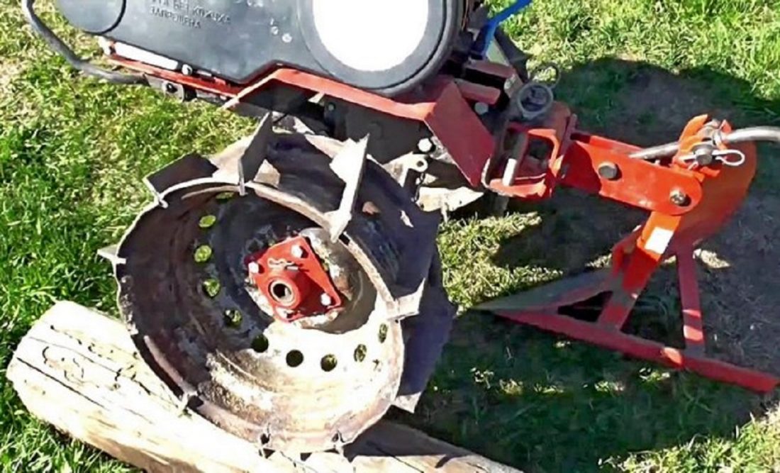 В использовании дисков от колес автомобилей можно найти только плюсы, так как из них проще всего изготовить фрезерные грунтозацепы для навесного оборудования, которое впоследствии будет монтироваться на мотоблок. Здесь при работе только потребуется сделать необходимые надрезы болгаркой, после чего навесить устройства на специальную раму, которую предстоит подвергнуть сцепке с мотоблоком. Сама рама делается достаточно тяжелой для утяжеления конструкции.