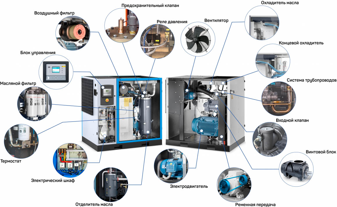В винтовых моделях особенно важной функцией является создание герметичных зазоров. Поэтому нельзя использовать масло с вязкостью менее 7 мм2/с