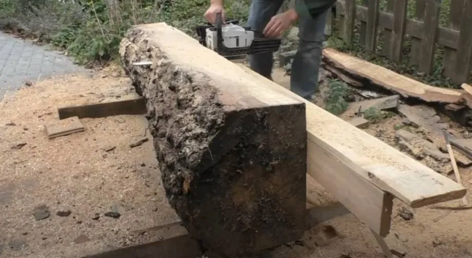 Прежде чем распилить бревно на доски бензопилой, следует грамотно подготовить сырье, чтобы на выходе получить минимальное количество отходов. В этом разделе расскажу, каким образом складывался процесс у меня: