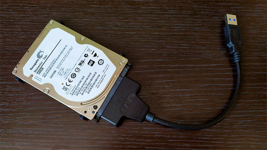 Самый дешевый способ ХДД или ССД сделать внешним жестким диском – это купить и подсоединить специальный переходник IDE Hard Drive Adapter (например, SATA на USB 3.0), а также кабель питания HDD Power Adapter (есть совместные варианты). Недостаток данной сборки в том, что выглядит все не очень (и это мягко сказано). По сути, корпус с пучком длинных проводов, вечно путающихся между собой. Еще проблема такой конструкции в опасности сборки. Если ошибиться с питанием (купить некачественный адаптер или подсоединить к мощному источнику без преобразователя), то можно легко спалить жесткий диск. Что касается подключения, выполнить его несложно. Просто подключите адаптеры к соответствующим разъемам жесткого диска и подсоедините к персональному компьютеру и источнику питания (также можно подключить к USB, все зависит от форм-фактора и энергопотребления накопителя).
