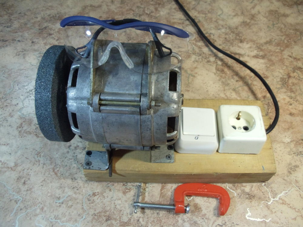 Наконец, остается смонтировать электроточило на постоянное место и подвести электричество. Наждак из двигателя от Малютки готов.