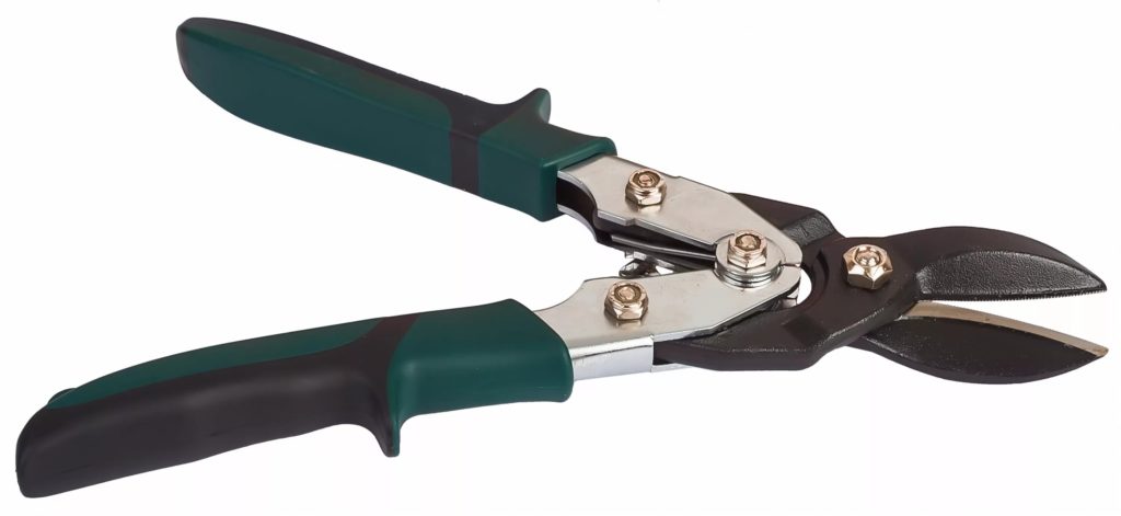 - Kraftool — классические ручные приспособления для разрезания листового металла. Легко прорезают толщину в 1,5 мм. Имея практический опыт использования подобных инструментов, можно использовать их как для прямых, так и для фигурных резов.