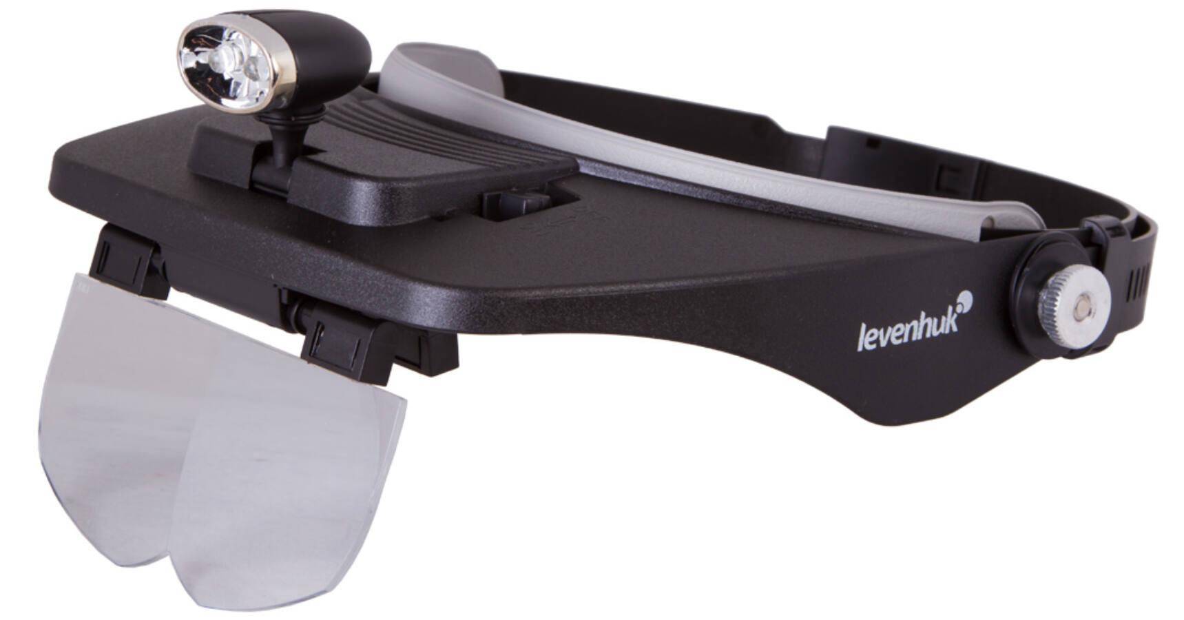 Налобная модель от российского бренда «Levenhuk» имеет телескопическое крепление, подходит для выполнения любых домашних или профессиональных работ, которые связаны с мелкими деталями.