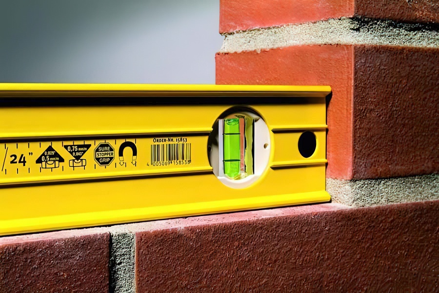 Самый распространенный в строительстве-уровень пузырьковый. Он еще используется как линейка. Это рейка где крепятся стеклянные пробирки со спиртовой жидкостью. В них пузырьки воздуха. Центральная пробирка для проверки горизонтальной поверхности, а две крайние демонстрируют вертикаль и 45 градусов. Пузырьковый уровень является самым бюджетным универсальным в строительстве. Он обычно изготавливается из алюминиевого или стального профиля. Алюминиевые чаще деформируюся при ударе или. Погрешность инструмента в 1 мм на каждый метр. Их применяют в основном при кладке стен и в штукатурке. Длина пузырького уровня самые разные. От 30 сантиметров до 4 метров. Самые востребованные уровни до 1 метра.