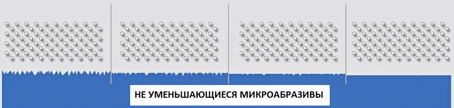 Не уменьшающиеся микроабразивы “работают” одинаково во время всего цикла полирования.
