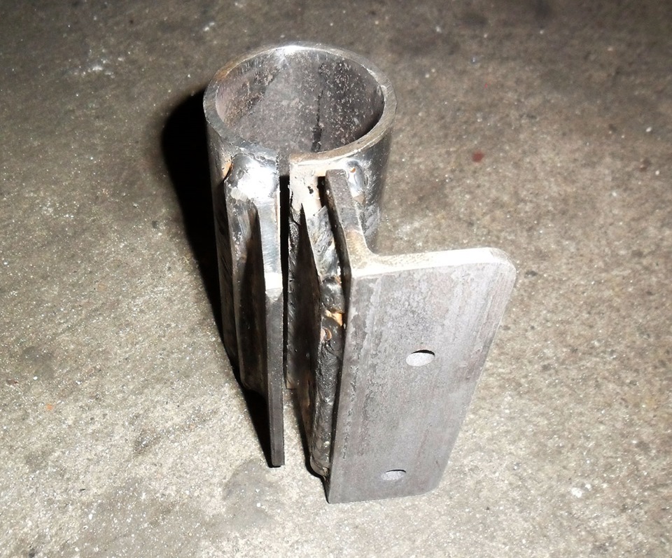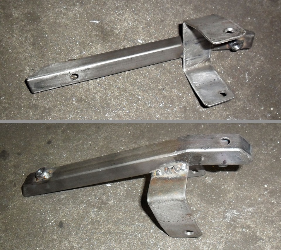Крепление приваривал, стараясь максимально соблюсти параллельность болгарки к плоскости вращения рычага. Для этого, когда варил, в крепежные отверстия вставил стержни — по ним контролировал параллельность.
