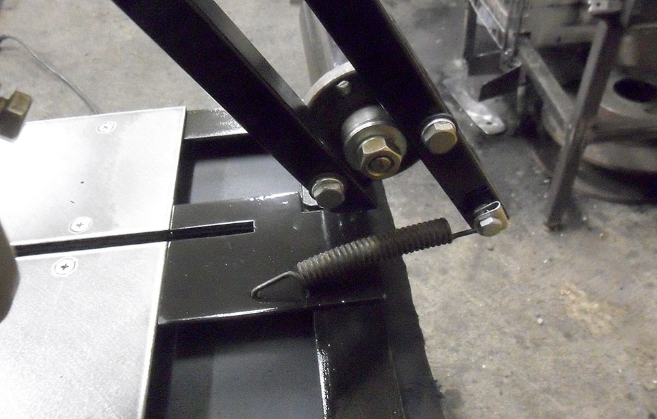 В продолжении стола на основании приварена пластинка 3мм. Она для крепления возвратной пружины, и чтобы выровнять уровень стола дальше по направляющим.