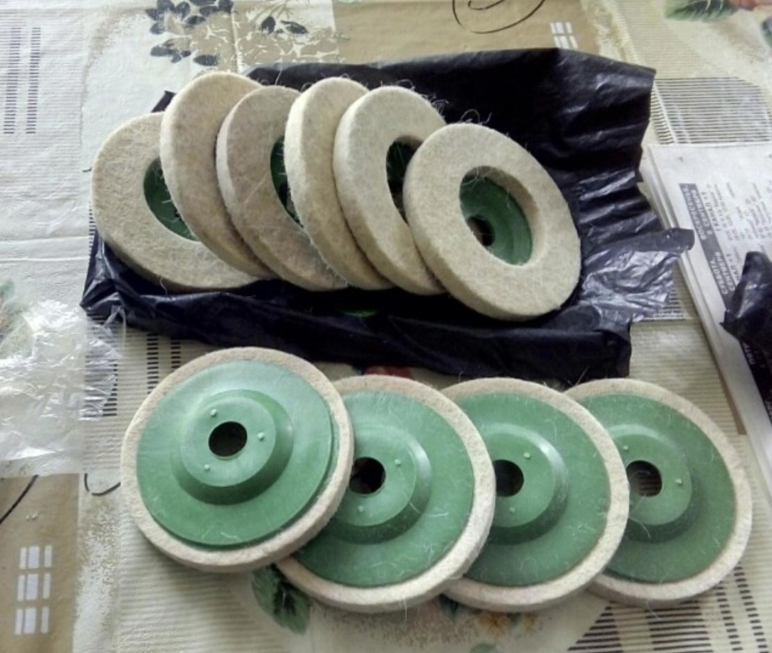 Основа полировочного диска – металл. На металлической основе закреплен шлифовальный материал – шелк. Полировочный круг рассчитан на работу с популярными видами «болгарок» – способными работать с дисками 100 мм и больше. Он прост в установке и замене. При наличии качественных полиролей обеспечивает устранение мелких царапин и трещин с обрабатываемой поверхности.