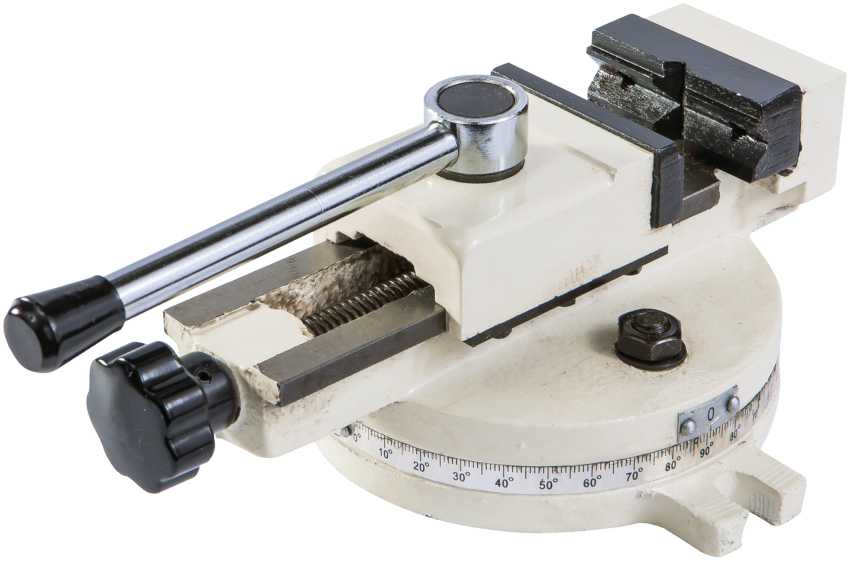 - Инструмент крепит деталь под конкретным углом и поддерживает поворачивание вокруг вертикальной оси.
