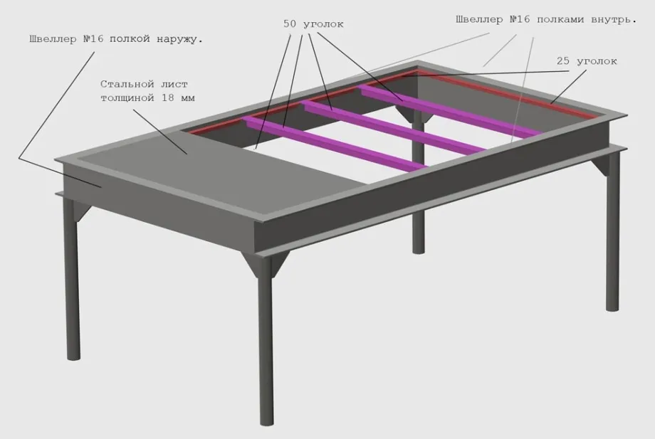 В качестве силовой рамы стола для сварочных работ почти всегда выступает металл.