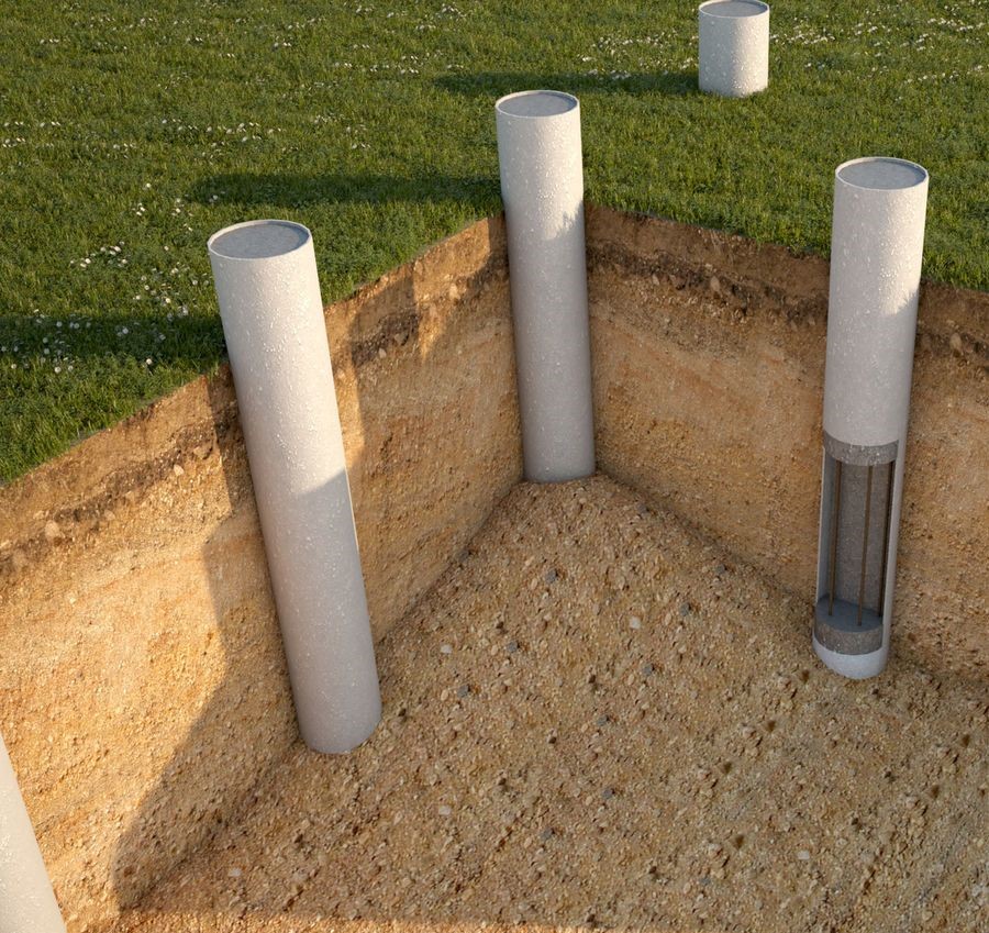 Чтобы рассчитать заглубление опоры, необходимо узнать глубину промерзания грунта в местности и прибавить 20 сантиметров. Например, если промерзание достигает 1,3 м, то буронабивные сваи погружаются на глубину 1,5 м. На пучинистых, сыпучих, болотистых и подвижных грунтах потребуются дополнительные исследования, а при заглублении нужно будет добираться до пластов с твердой породой.