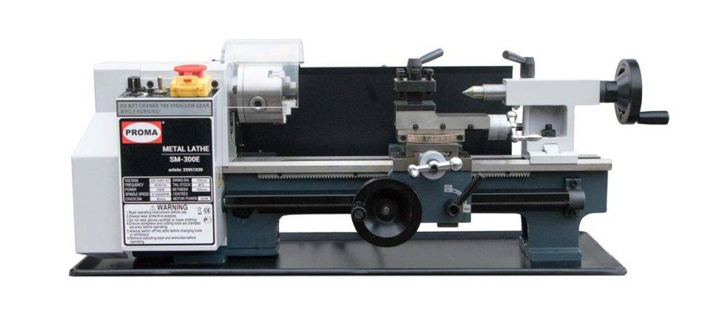 Мини станок по металлу весит всего 13 кг. Производитель установил компактный коллекторный электродвигатель мощностью 250 Вт. Мотор легко разгонят шпиндель до скорости в 3600 об/мин, что является высокими показателями для своего класса. Предназначен для обработки цилиндрических заготовок, можно выполнять шлифование и сверление.