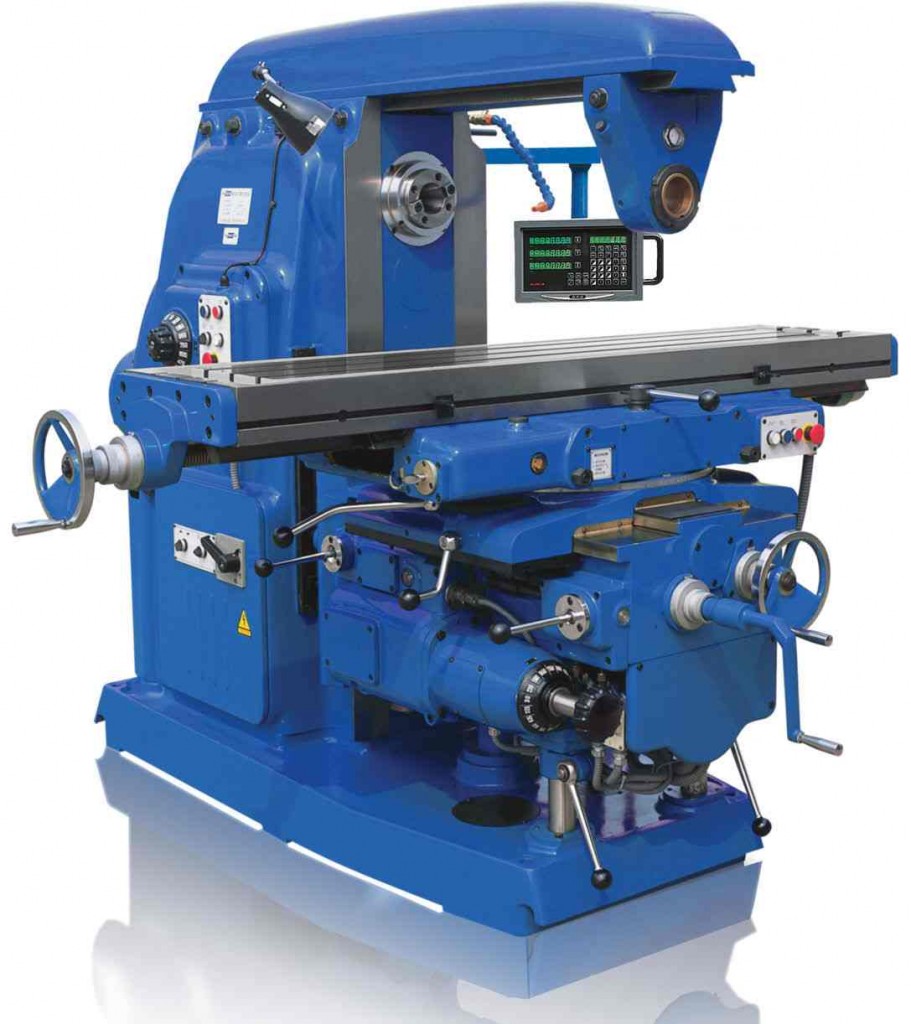 Такой тип, является одним из самых распространенных. Этот вариант очень простой в практической работе и техническом уходе. Представляет собой станину механизма с горизонтальным шпинделем, на котором располагается фреза, коробку передач и стол, перемещающийся горизонтально, вертикально и перпендикулярно. Станки подобного типа не только простые, они еще и надежные – что дает возможность выбрать их в качестве оборудования для любой ремонтной мастерской.