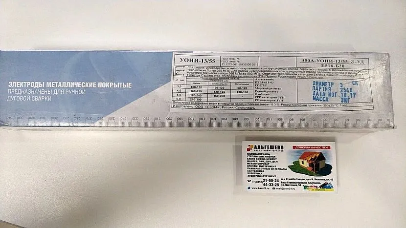 Следующий ряд знаков обозначает марку (в нашем случае УОНИ-13/55) – наименование зависит от производителя. Следом идёт обозначение диаметра.