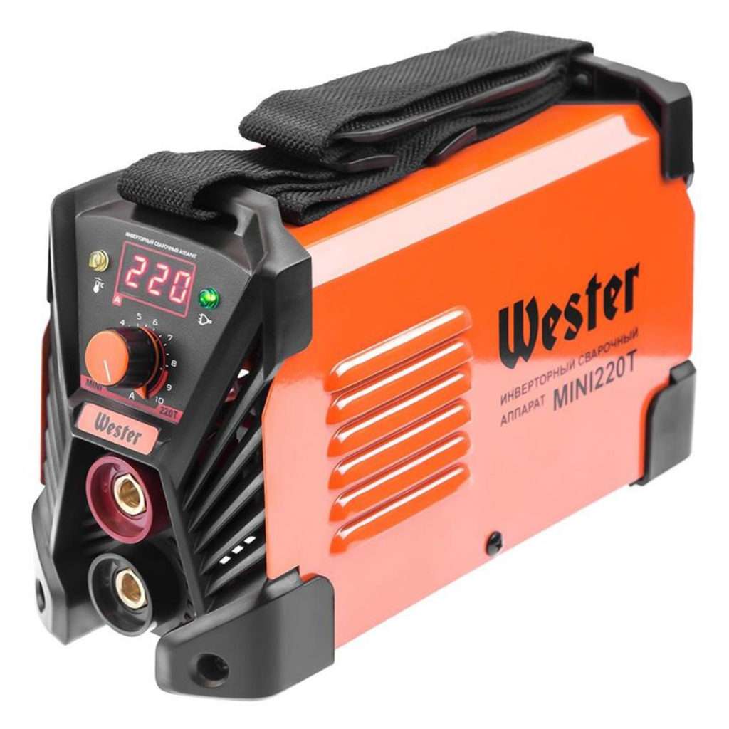 Одна из простых моделей — Wester MINI 160Т. Весит всего 3 кг, имеет удобный ремень для переноски, диапазон сварочных токов — 30-160 А.