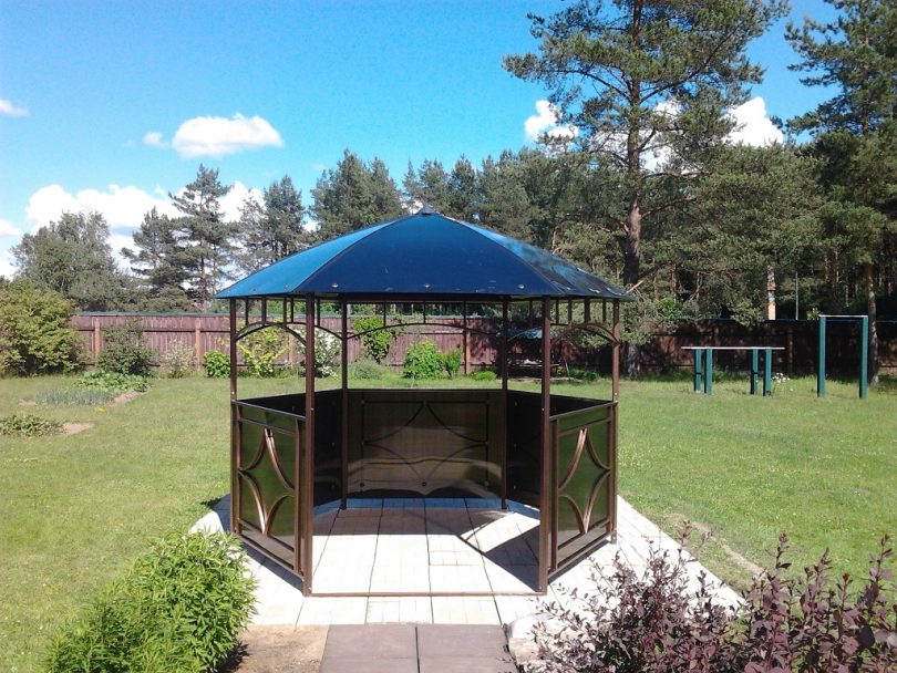 Сочетание железа с поликарбонатом – беседки из металла, фото