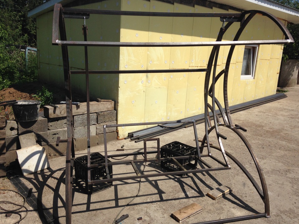 Сделали качели с другом . Профильная труба 45*25 толщина 1,5 мм и 25*25 толщина 1,5 мм . Красил краской hammirite с молотковый эффектом . Варил второй раз в жизни . Размеры качель длина 2 метра ширина 1,5 метра высота 2,1 метра . Диван от Волги . Следующие качели будут из профильной трубы 45*25 толщина 2 мм