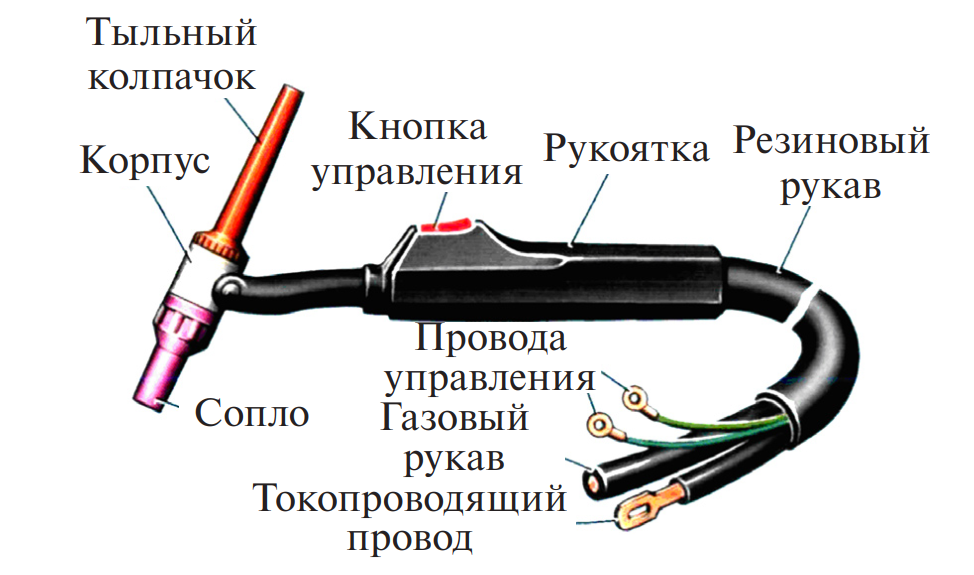 Пост сварки комплектуют горелкой с вентилем на рукоятке для регулирования подачи защитного газа. В специальных установках используют горелки с встроенной в рукоятку кнопкой или клавишей для управления подачей газа, включения систем бесконтактного зажигания, плавного нарастания тока и др.
