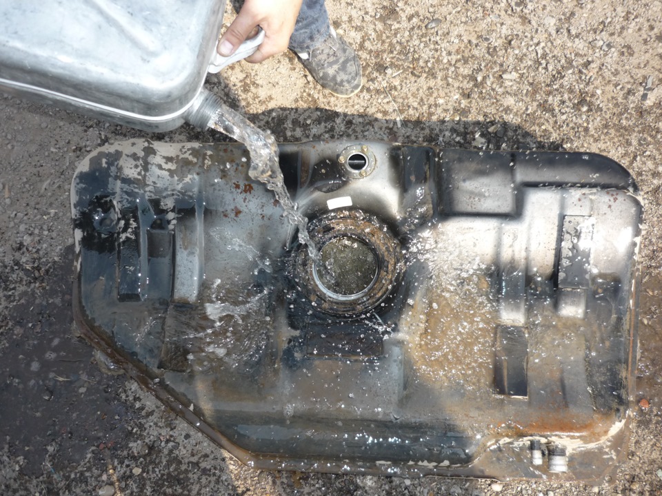 Стальной топливный бак восстанавливают методом холодной сварки или при помощи эпоксидной смолы и стеклоткани. В обоих случаях необходимо подготовить емкость к ремонтным работам.